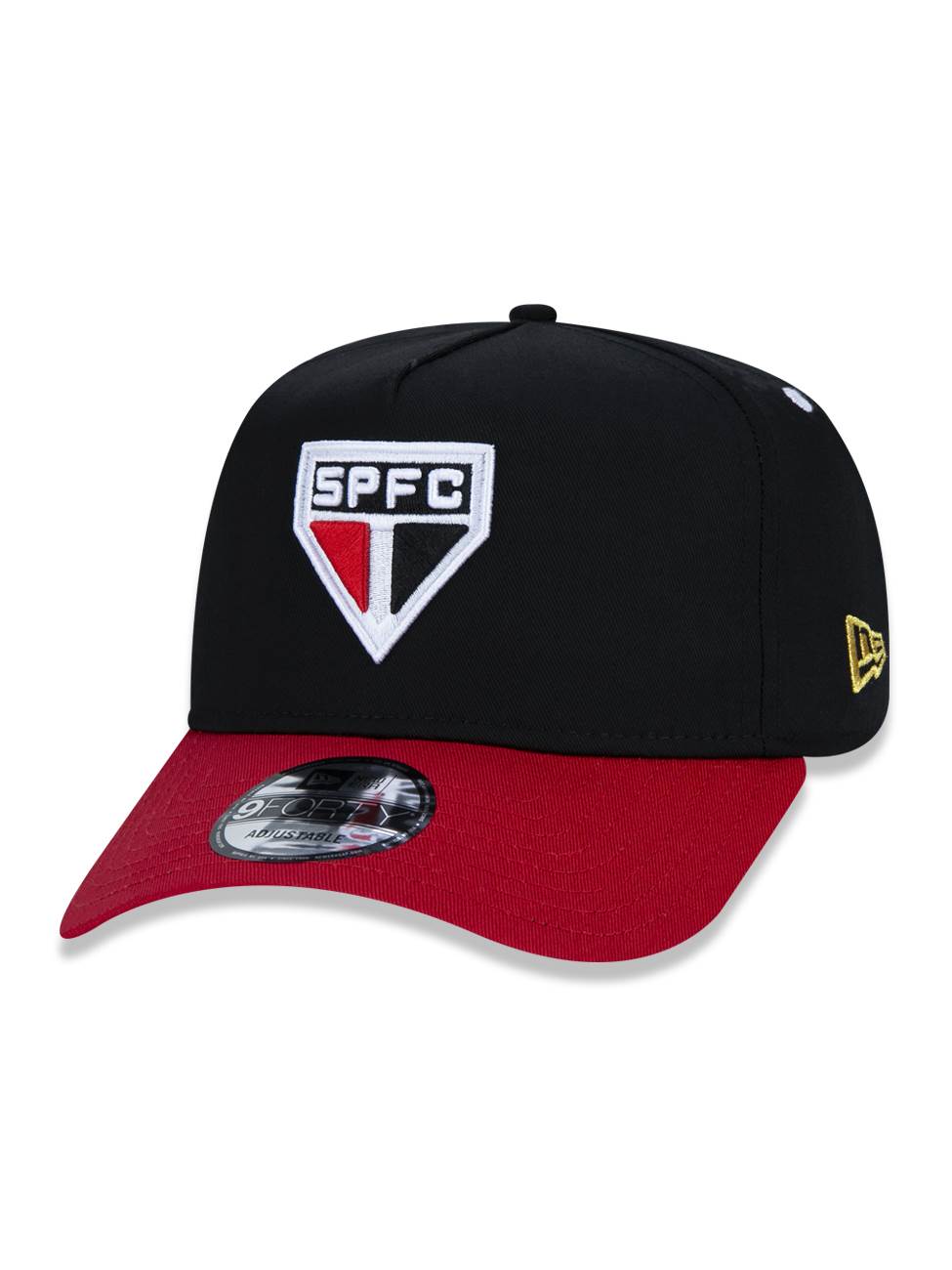 O Boné 9FORTY A-Frame Preto - São Paulo é o acessório definitivo para o torcedor do Soberano que busca um visual moderno, imponente e altamente versátil. Na silhueta A-Frame da New Era, ele apresenta a coroa alta e estruturada com um painel frontal único, garantindo um caimento marcante e robusto. A cor preta confere um toque Blackout sofisticado, perfeito para combinar com qualquer roupa e ocasião.