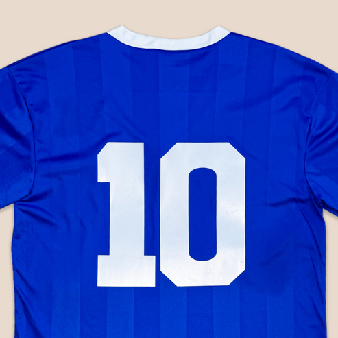 O Legado: Foi vestindo este azul improvisado que Maradona marcou os dois gols mais famosos de sua carreira: o gol da "Mão de Deus", fruto da malandragem, e o "Gol do Século", onde driblou meio time inglês. O peso histórico desta camisa é incomensurável, pois ela simboliza a mistura de genialidade e rebeldia de El Pibe.