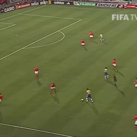 Ronaldo, o Fenômeno: Este uniforme é o símbolo máximo do auge de Ronaldo Nazário. O design foi feito sob medida para a potência e o dinamismo de um time estrelado que contava também com Rivaldo, Roberto Carlos e Bebeto, sob o comando de Zagallo. O número 9 de Ronaldo, estampado nesta camisa, tornou-se sinônimo de um futebol rápido, mágico e avassalador.