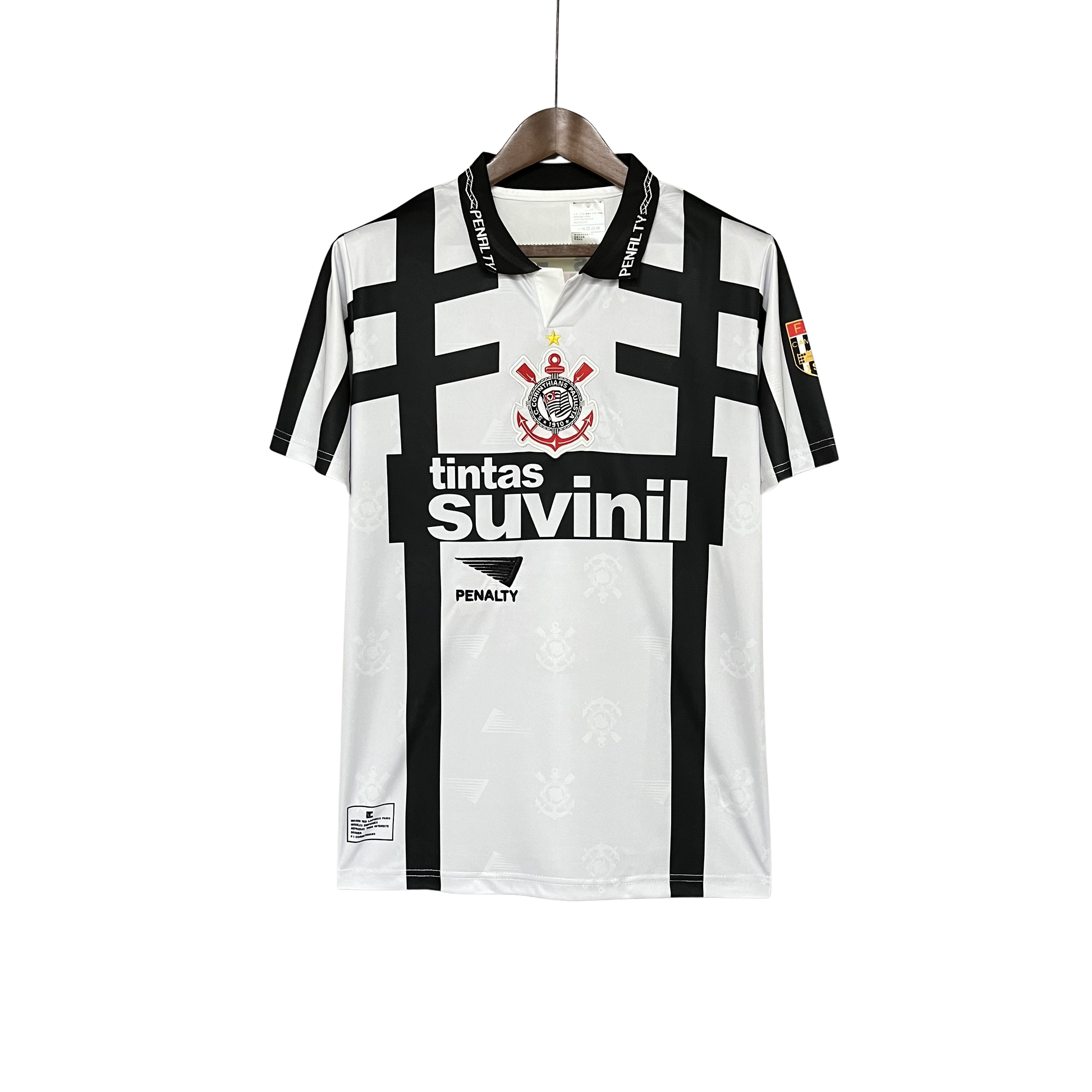 A Camisa Corinthians III 1996 Retrô (Branca Suvinil) é uma peça que celebra um dos uniformes alternativos mais clean e distintos do Timão no meio dos anos 90. Este manto é historicamente associado à marca Penalty (fornecedora da época) e é lembrado pela conquista do Campeonato Paulista de 1997 (embora o uniforme tenha sido lançado em 1996, a fase áurea continuou).