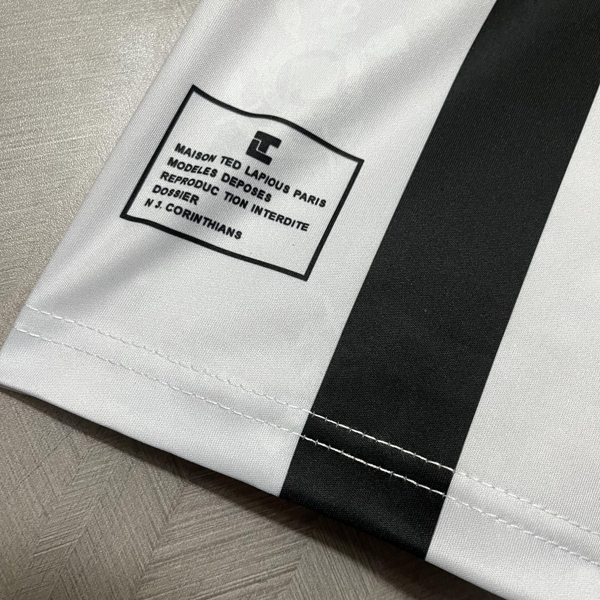 O design é marcado pela base branca pura, que serve como uma homenagem aos primeiros uniformes do clube. A camisa se destaca pela gola polo em V com detalhes em preto e/ou vermelho e os punhos em cores contrastantes (em algumas versões, havia um design mais geométrico nas laterais). O grande diferencial e o que torna esta camisa cult é o patrocínio Suvinil (Tintas), aplicado em destaque no peito, reforçando a nostalgia da época de Rincón, Marcelinho Carioca e Donizete.