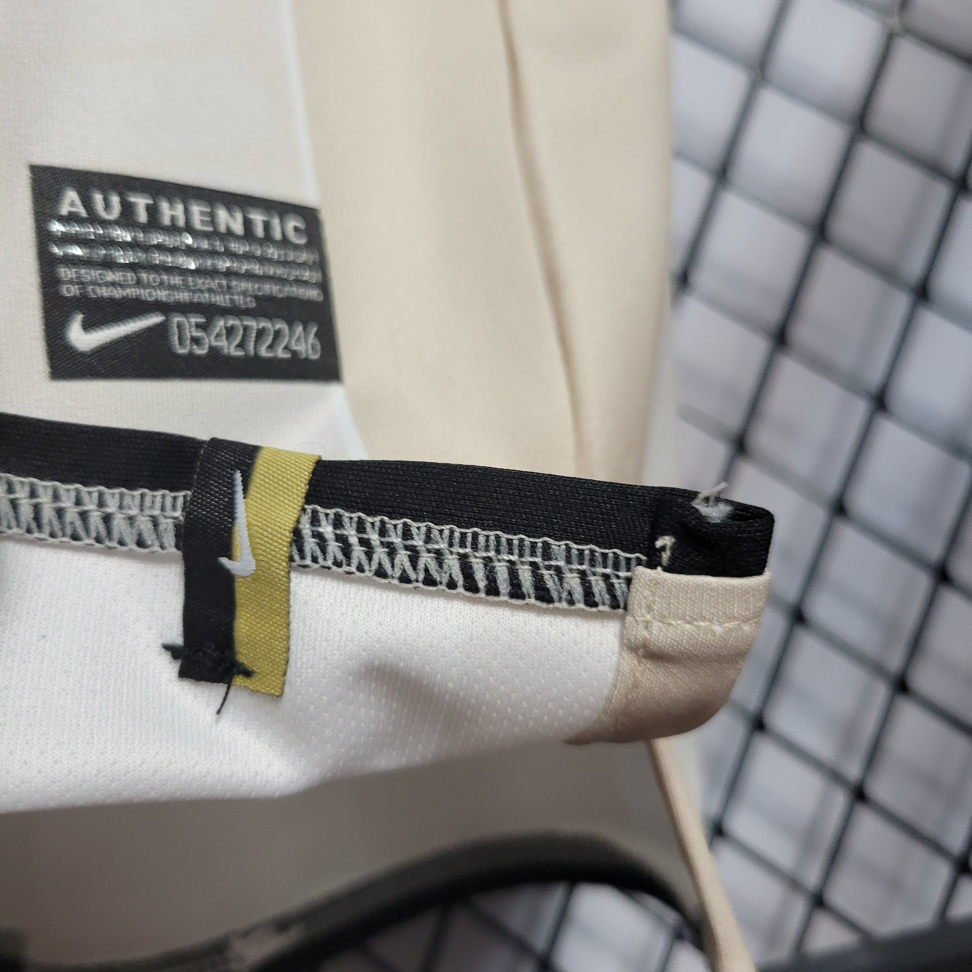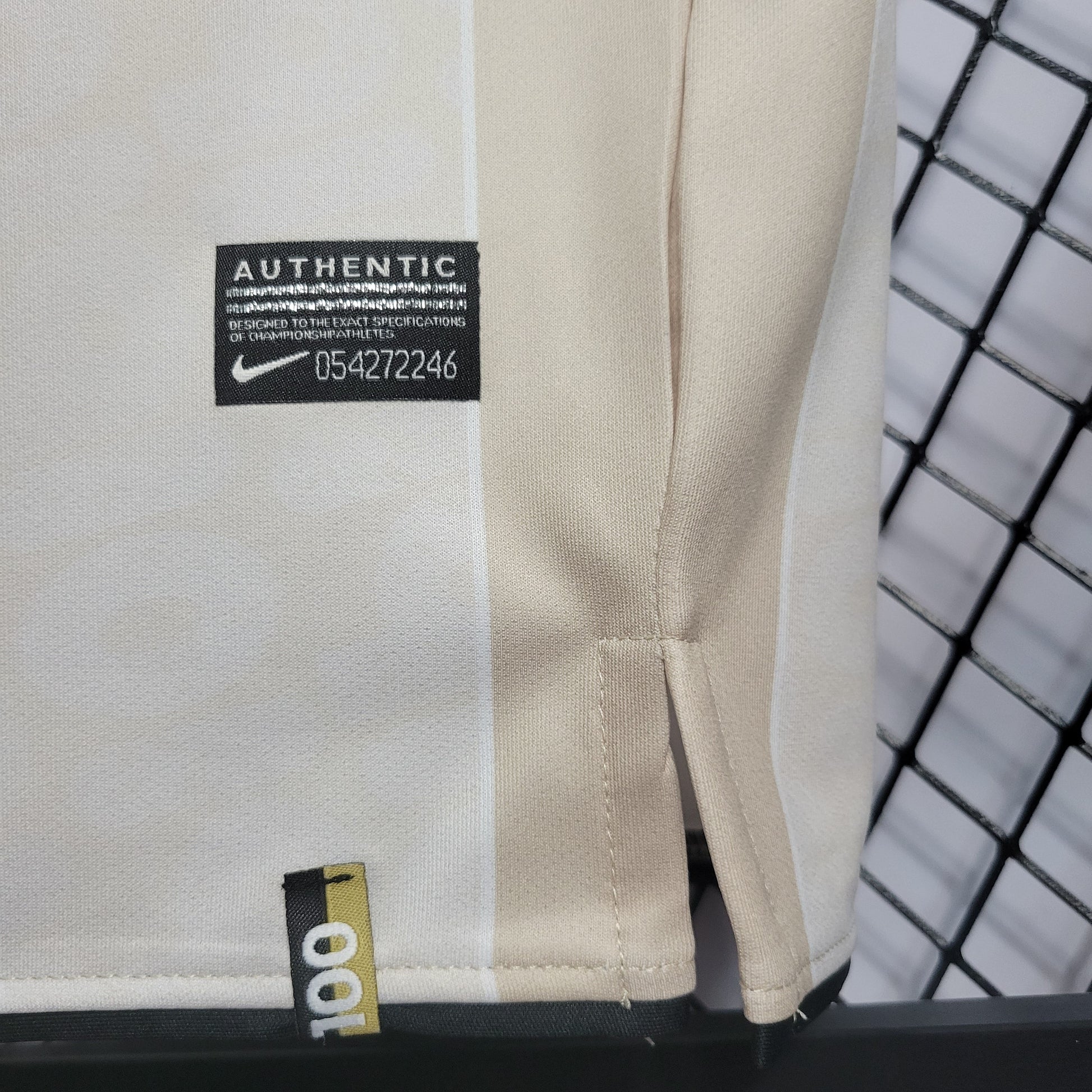 A Camisa Retrô Corinthians 100th celebra os 100 anos de história do Timão com um visual elegante e atemporal. Em tom bege clássico com detalhes em preto, o modelo homenageia o legado do clube com sofisticação e respeito às suas origens.