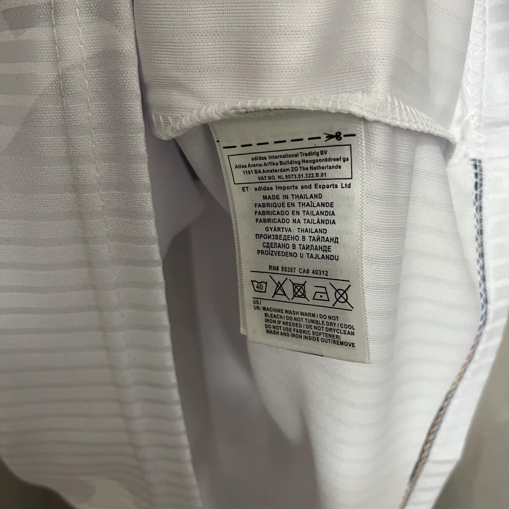 Cor branca com detalhes em vermelho e preto (Uniforme Reserva).