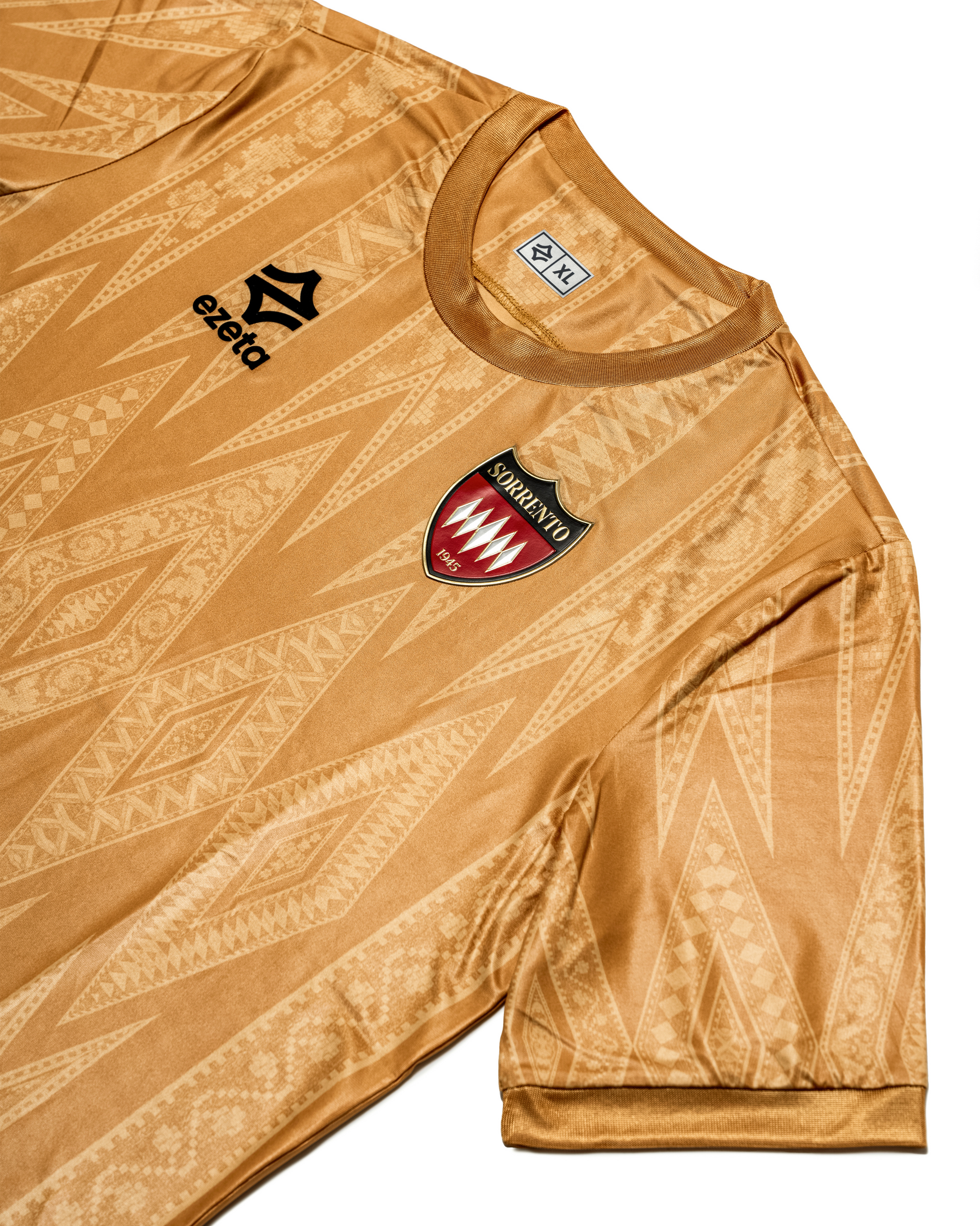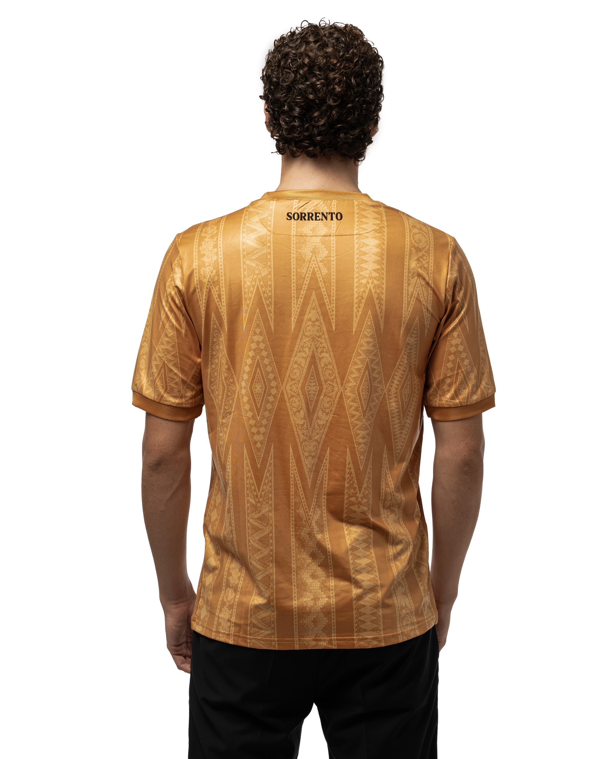 A camisa I de goleiro presta homenagem à antiga arte da marchetaria sorrentina.