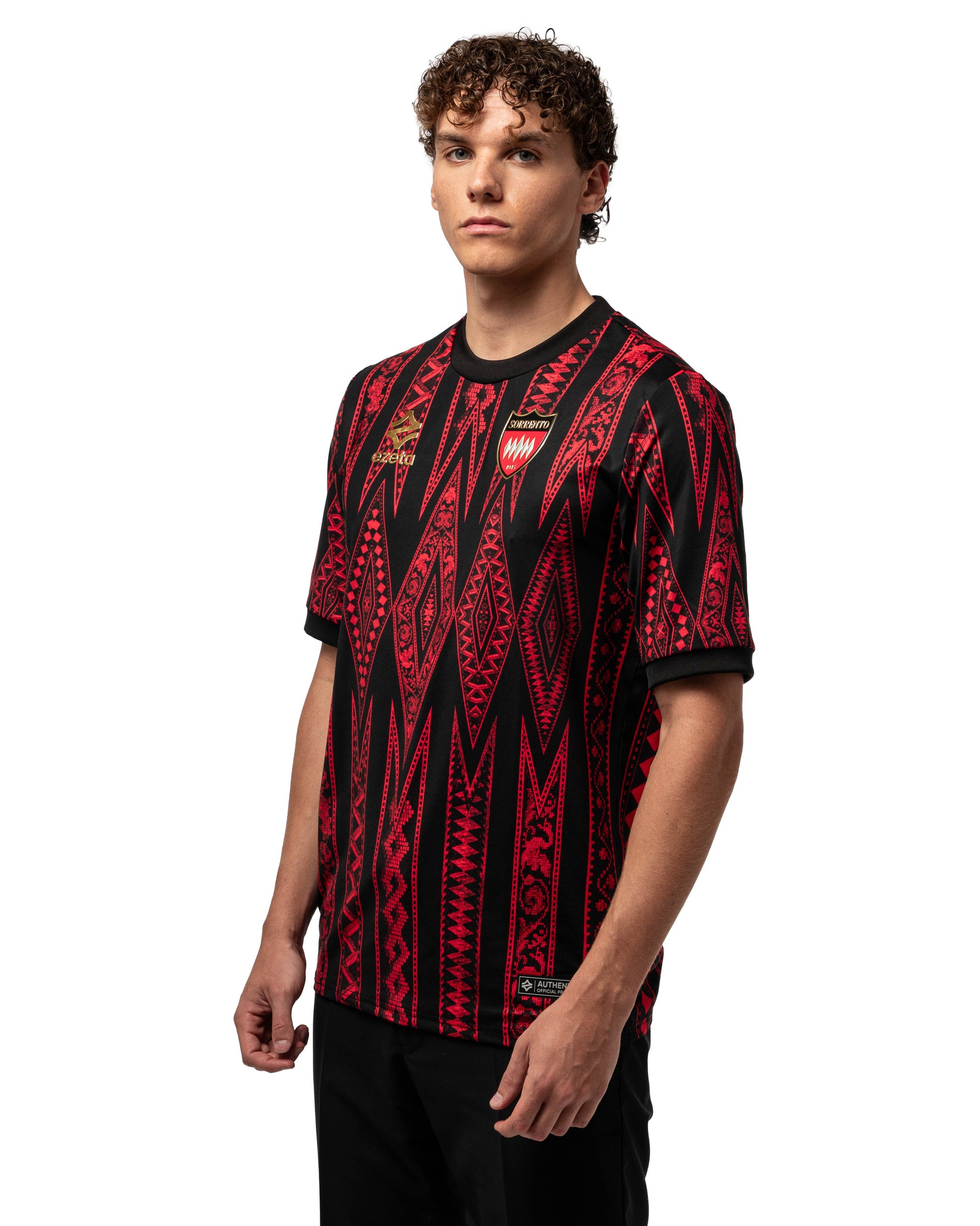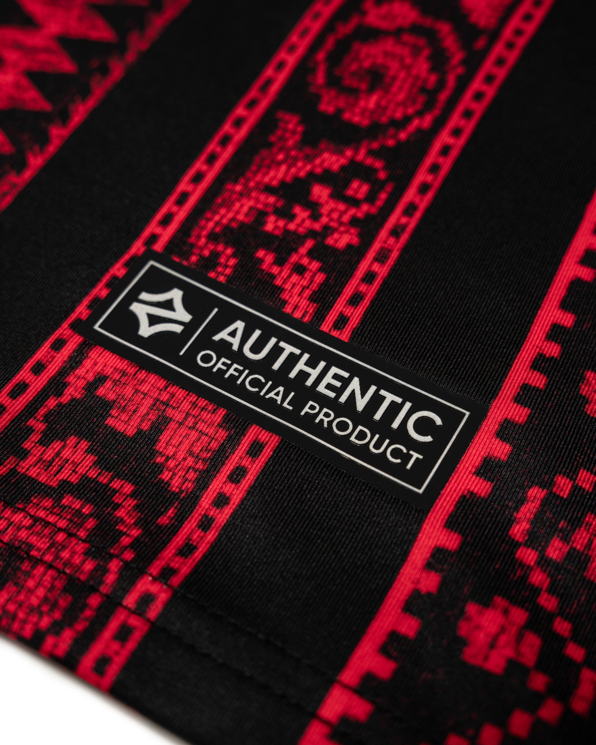 As listras vermelhas e pretas se entrelaçam harmoniosamente com os cinco losangos que simbolizam a cidade há séculos.